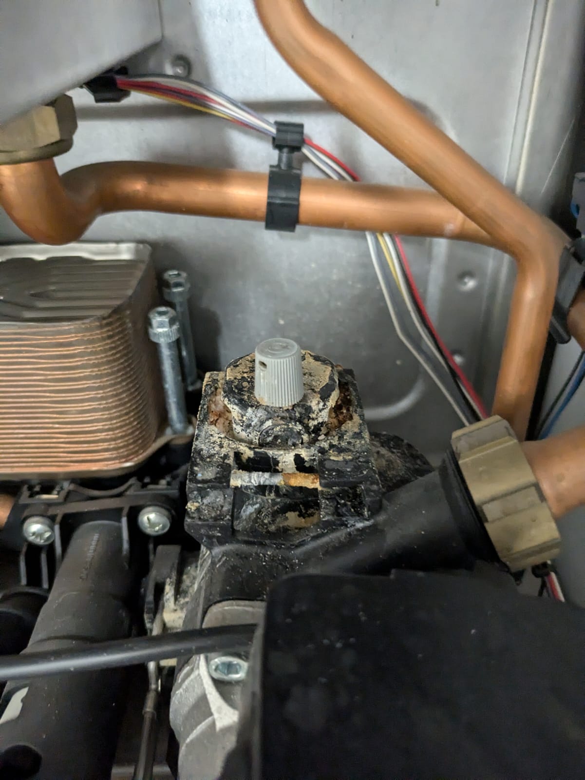 Sur la première photo, vous pouvez voir un purgeur automatique encrassé et fuyant. Ce type de dysfonctionnement est fréquent lorsque le purgeur n’est pas entretenu ou lorsqu’il vieillit. L’encrassement empêche le mécanisme de fonctionner correctement, ce qui provoque des fuites d’eau et empêche l’évacuation efficace de l’air.